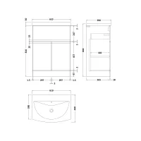 Urban Floor Standing 2 Door 1 Drawer Vanity Unit with Mid-Edge Basin 600mm