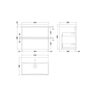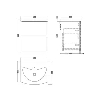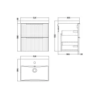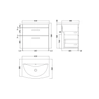 Urban Wall Hung 2 Drawer Vanity & Curved Ceramic Basin, 600mm