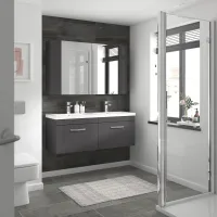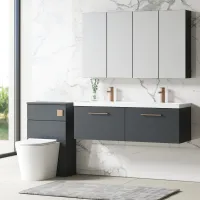 Arno Wall Hung 2 Drawer Vanity & Double Polymarble Basin, 1200mm