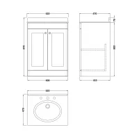 Classique Floor Standing 2 Door Unit & 3 Tap Hole Marble Top with Oval Basin, 600mm