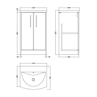 Juno Floor Standing 2 Door Vanity Basin Unit & Curved Ceramic Basin, 500mm