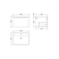 Lunar Wall Hung 1 Drawer Unit & Ceramic Basin, 600mm