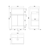 Urban Floor Standing 2 Door 1 Drawer Vanity Unit with Minimalist Basin 500mm