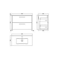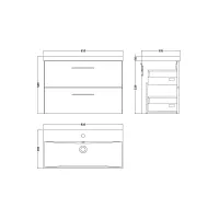 Havana Wall Hung 2 Drawer Vanity Basin Unit & Minimalist Ceramic Basin, 800mm