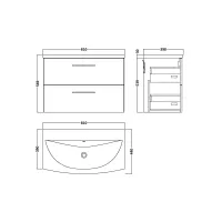 Arno Wall Hung 2 Drawer Vanity & Curved Ceramic Basin, 800mm