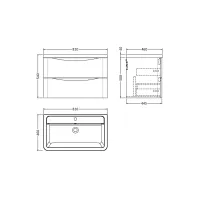 Lunar Wall Hung 2 Drawer Unit & Polymarble Basin, 800mm