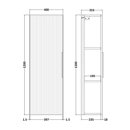 Fluted 400mm Tall Unit Single Door