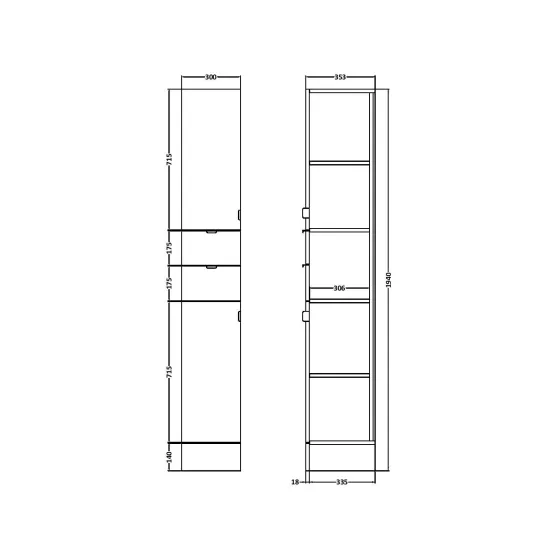 Hudson Reed Fusion Fitted Floor Standing 2 Door 2 Drawer Tall Unit 300mm - Anthracite Woodgrain
