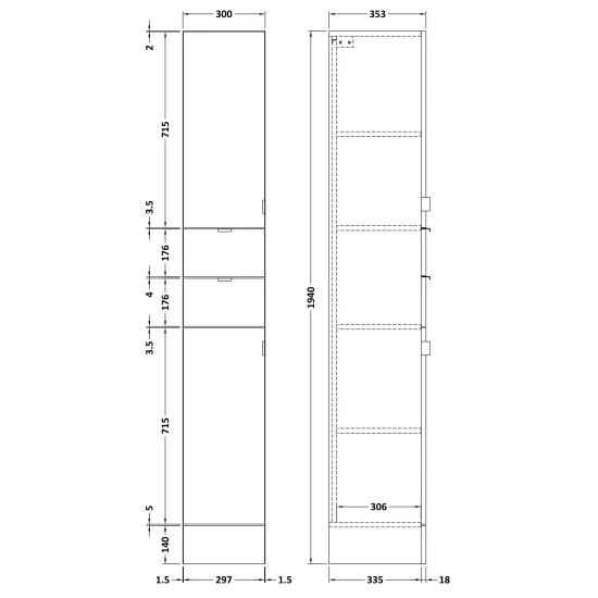 Hudson Reed Fusion Fitted Floor Standing 2 Door 2 Drawer Tall Unit 300mm - Hacienda Black