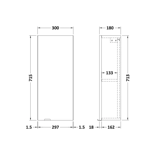 Fusion Fitted Wall Hung 1 Door Cabinet 300mm