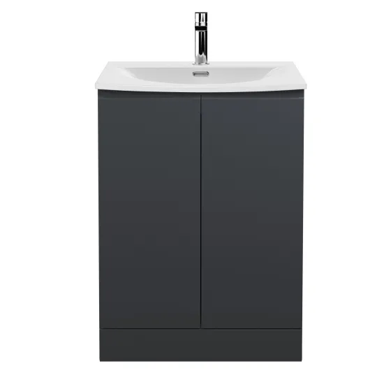 Hudson Reed Urban Floor Standing 2 Door Vanity & Curved Ceramic Basin, 600mm - Satin Anthracite