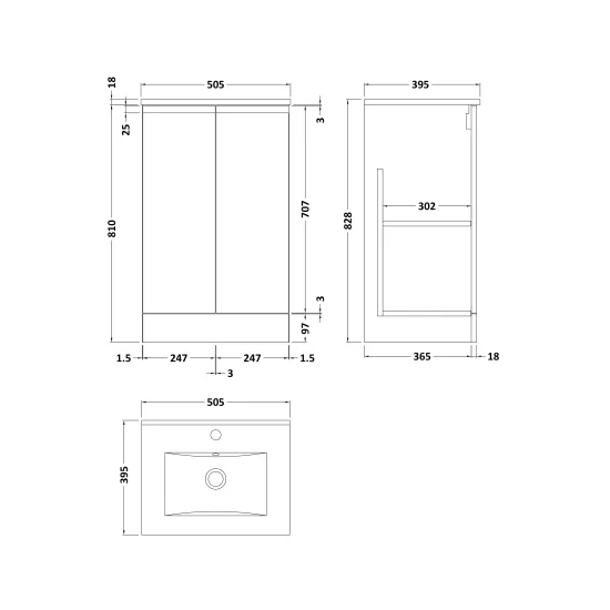 Urban Floor Standing 2 Door Vanity & Minimalist Ceramic Basin, 500mm