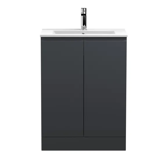 Hudson Reed Urban Floor Standing 2 Door Vanity & Minimalist Ceramic Basin, 600mm - Satin Anthracite