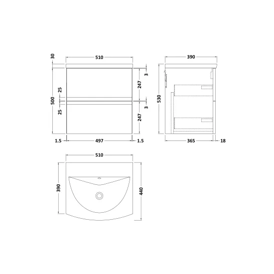 Urban Wall Hung 2 Drawer Vanity & Curved Ceramic Basin, 500mm