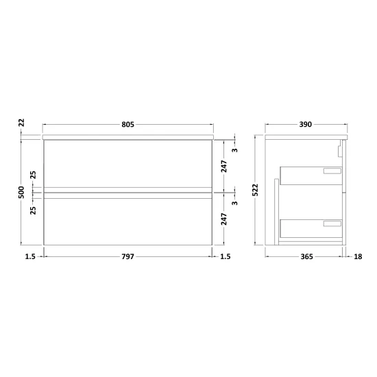 Urban Wall Hung 2 Drawer Vanity & Laminate Worktop, 800mm