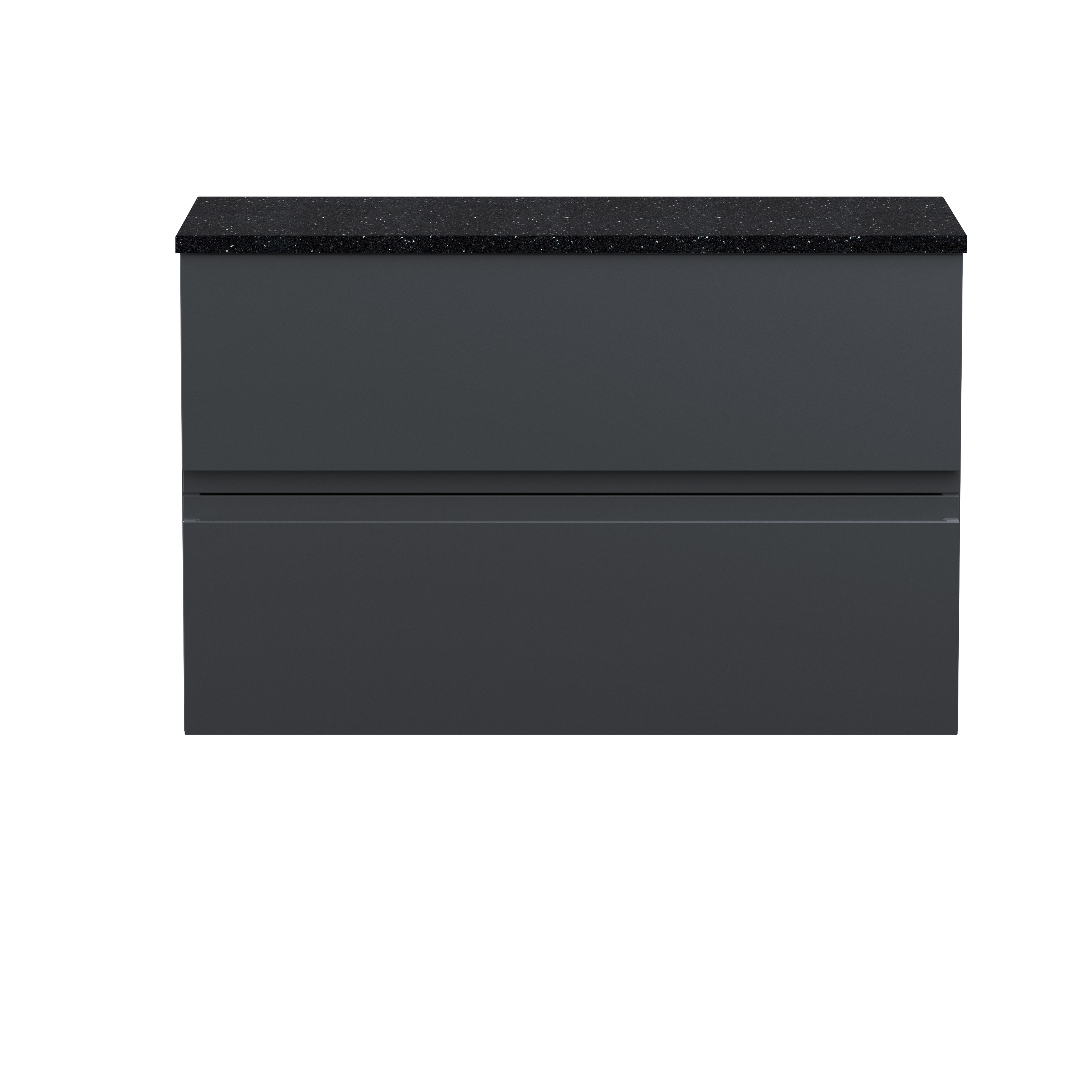 Hudson Reed Urban Wall Hung 2 Drawer Vanity & Laminate Worktop, 800mm - Satin Anthracite/Black Sparkle