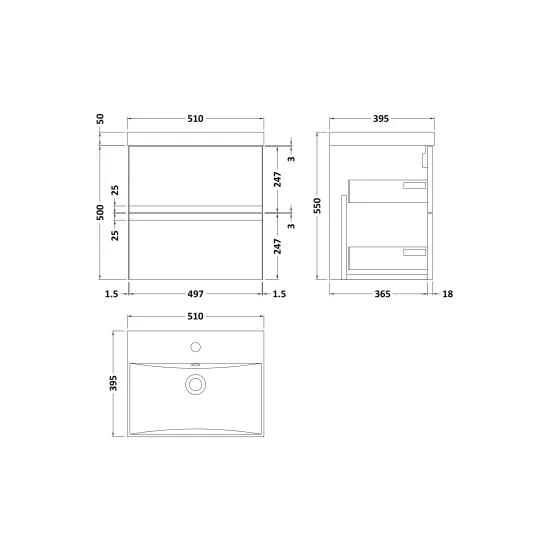 Urban Wall Hung 2 Drawer Vanity & Thin-Edge Ceramic Basin, 500mm