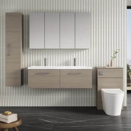 nuie Arno 1200mm Wall Hung 2-Drawer Vanity & Double Basin - Solace Oak