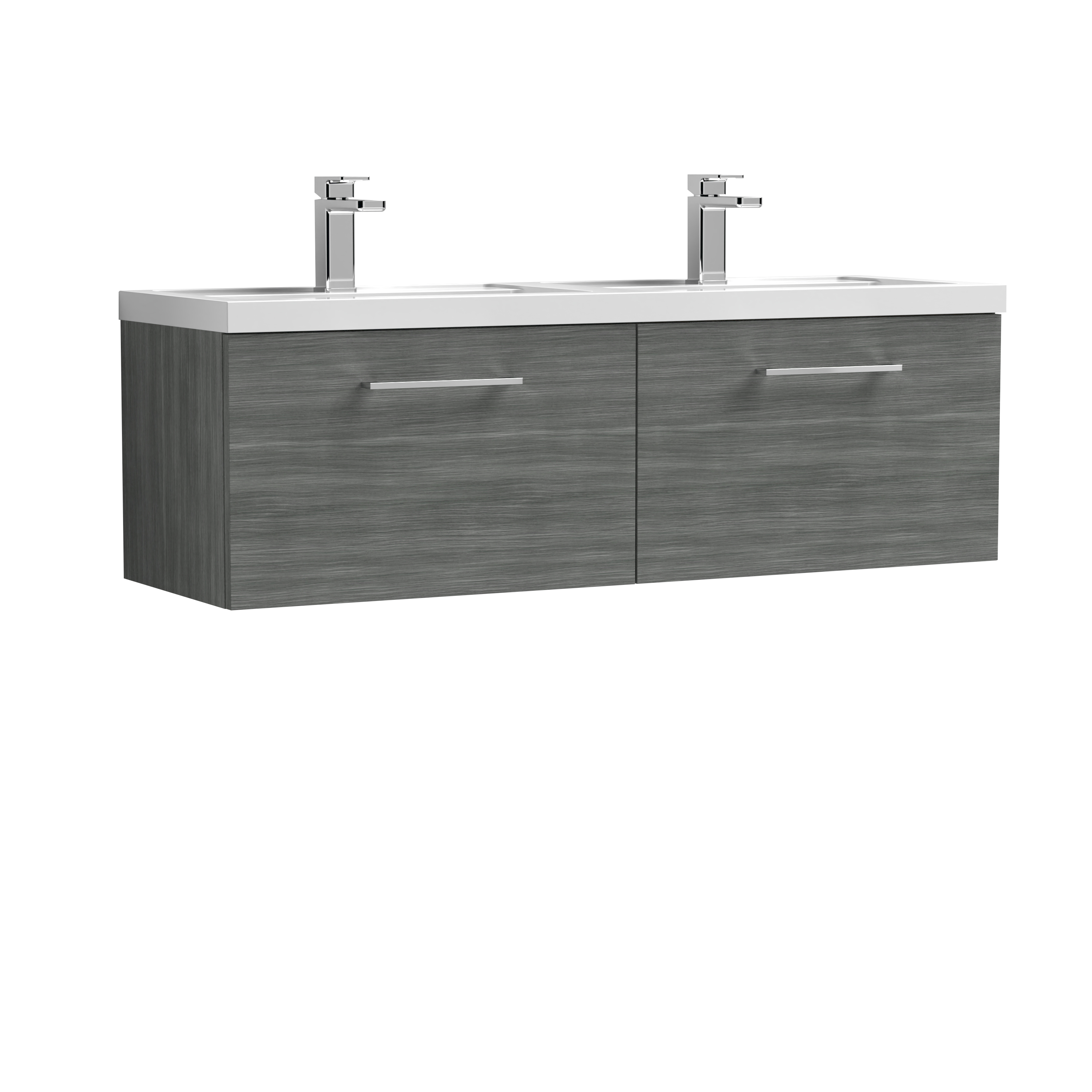 nuie Arno 1200mm Wall Hung 2-Drawer Vanity & Double Basin - Anthracite