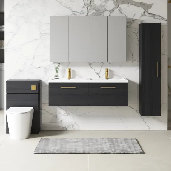 nuie Arno 1200mm Wall Hung 2-Drawer Vanity & Double Basin - Charcoal Black