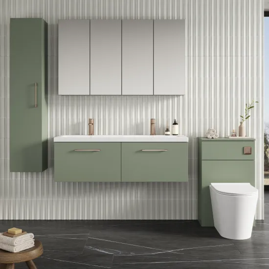nuie Arno 1200mm Wall Hung 2-Drawer Vanity & Double Basin - Satin Green