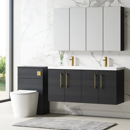 This unique charcoal black finish compliments any modern bathroom to create a designer look. This wall hung unit creates more space in your bathroom giving the illusion of a bigger bathroom. This unit has soft close doors which limits the daily wear and tear and provides a quieter closing action. Colour co-ordinate your unit with a charcoal black WC unit. Supplied with high quality ceramic basin.