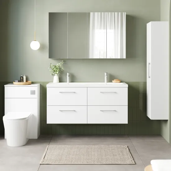 nuie Arno 1200mm Wall Hung 4-Drawer Vanity & Double Basin - Gloss White