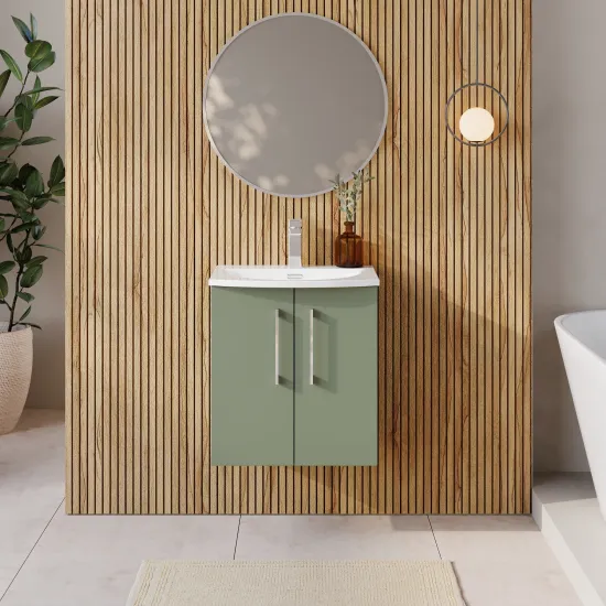 nuie Arno 500mm Wall Hung 2-Door Vanity & Curved Basin - Satin Green