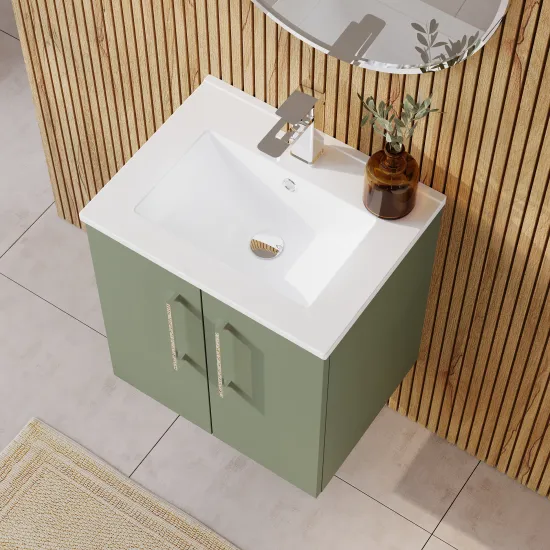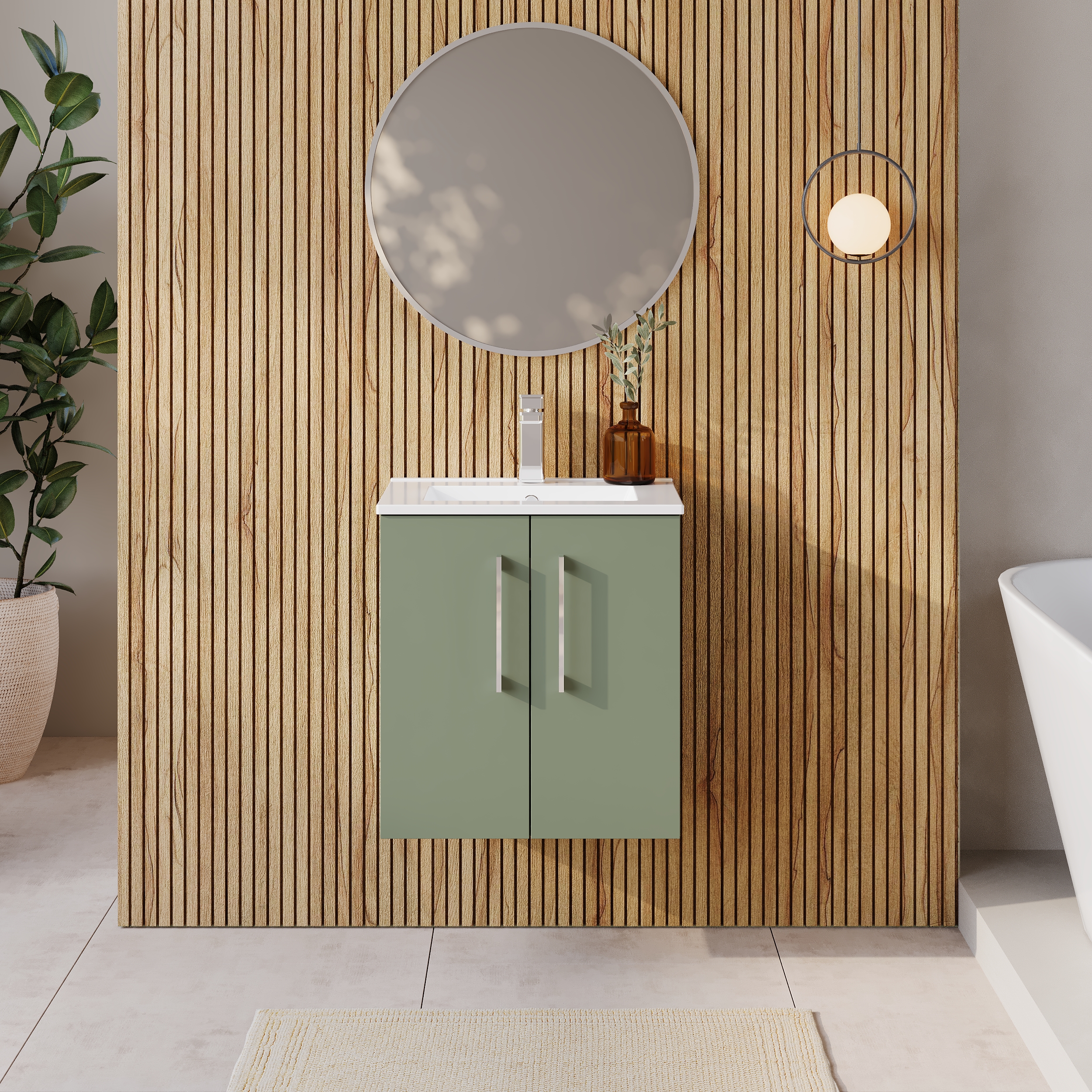 nuie Arno 500mm Wall Hung 2-Door Vanity & Minimalist Basin - Satin Green