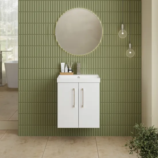 nuie Arno 500mm Wall Hung 2-Door Vanity & Thin-Edge Basin - Gloss White
