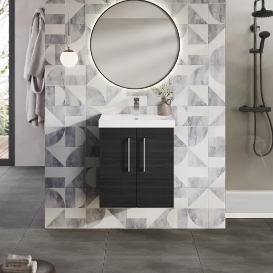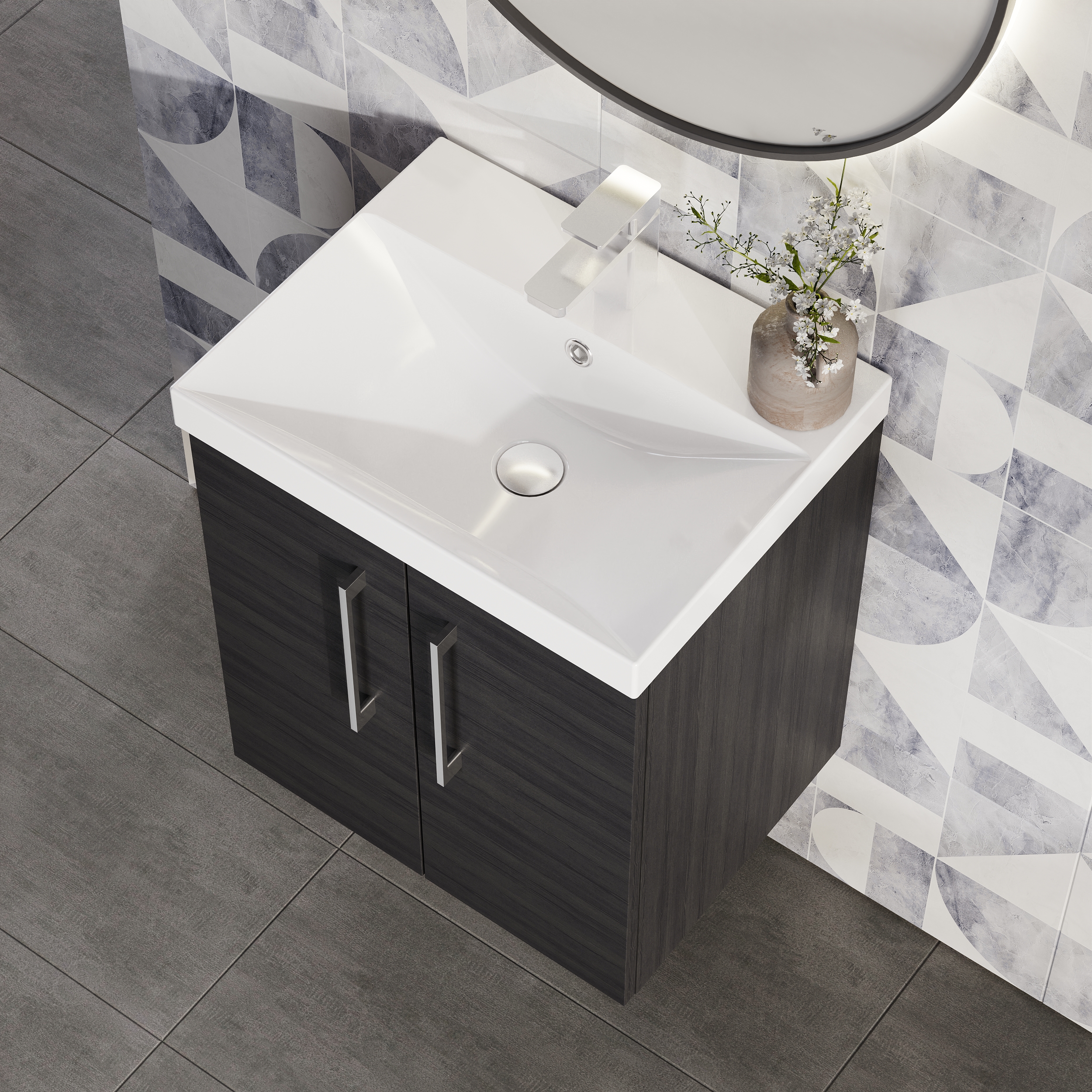 nuie Arno 500mm Wall Hung 2-Door Vanity & Thin-Edge Basin - Charcoal Black