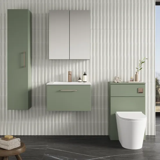 nuie Arno 600mm Wall Hung 1-Drawer Vanity & Minimalist Basin - Satin Green