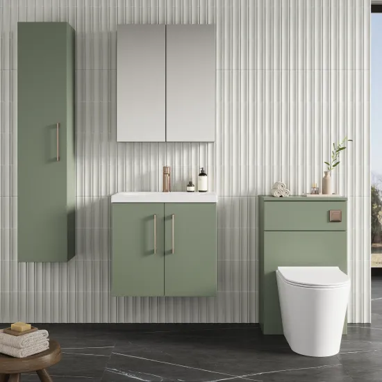 nuie Arno 600mm Wall Hung 2-Door Vanity & Mid-Edge Basin - Satin Green