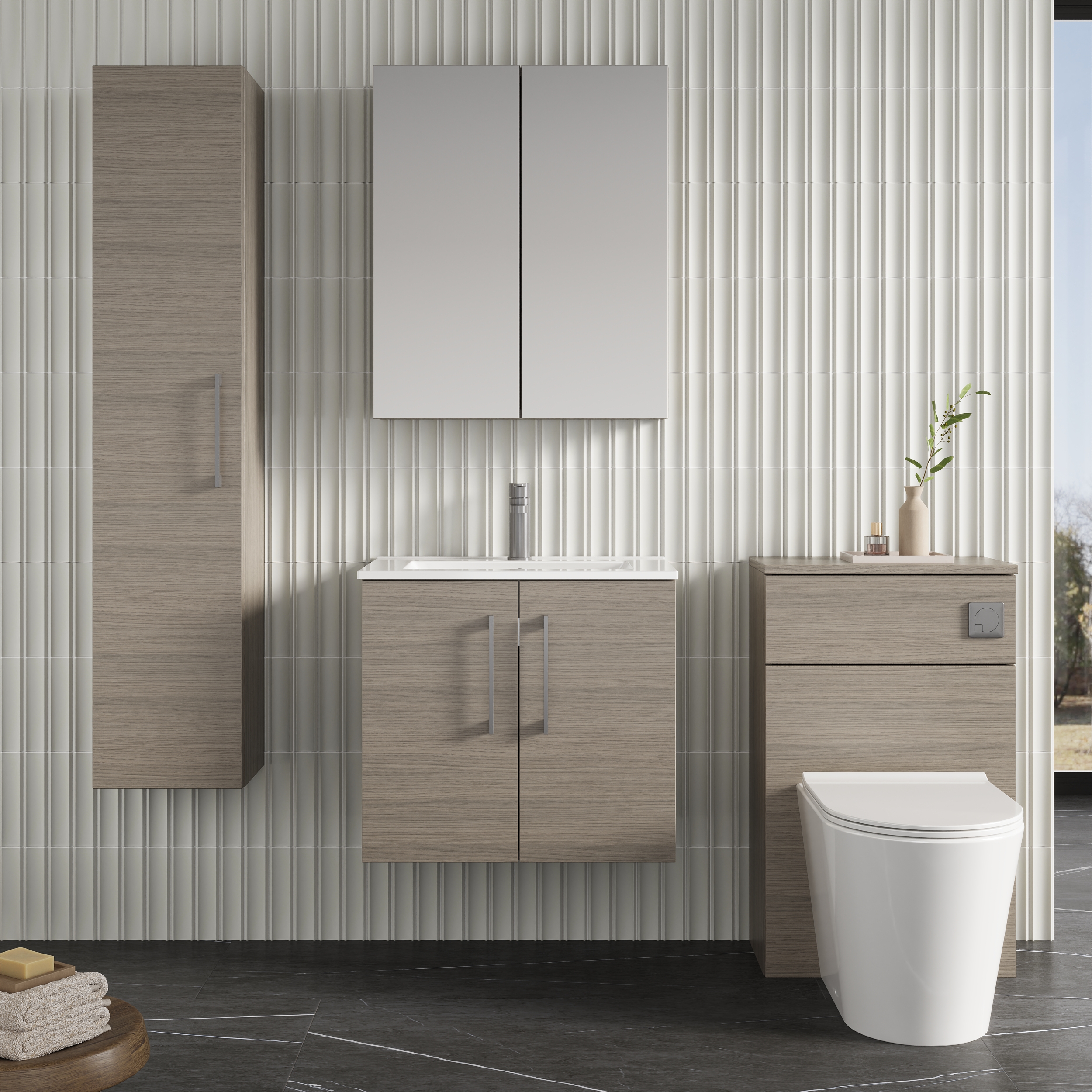 nuie Arno 600mm Wall Hung 2-Door Vanity & Minimalist Basin - Solace Oak