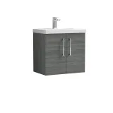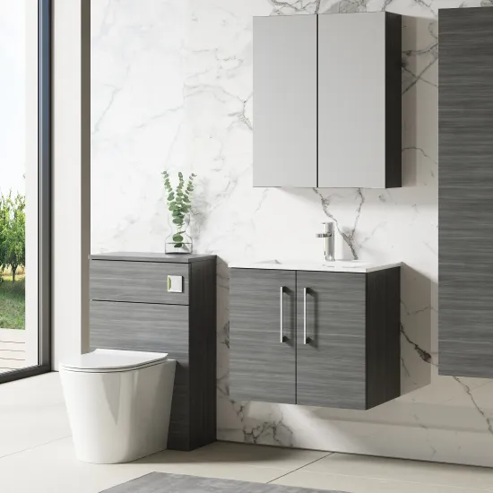 This unique anthracite finish compliments any modern bathroom and creates a designer look. This wall hung unit creates more space in your bathroom giving the illusion of a bigger bathroom. This unit has soft close doors which limits the daily wear and tear and provides a quieter closing action. Colour co-ordinate your unit with an anthracite WC unit. Supplied with high quality vitreous china basin.