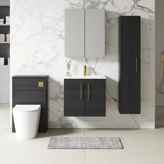 nuie Arno 600mm Wall Hung 2-Door Vanity & Minimalist Basin - Charcoal Black
