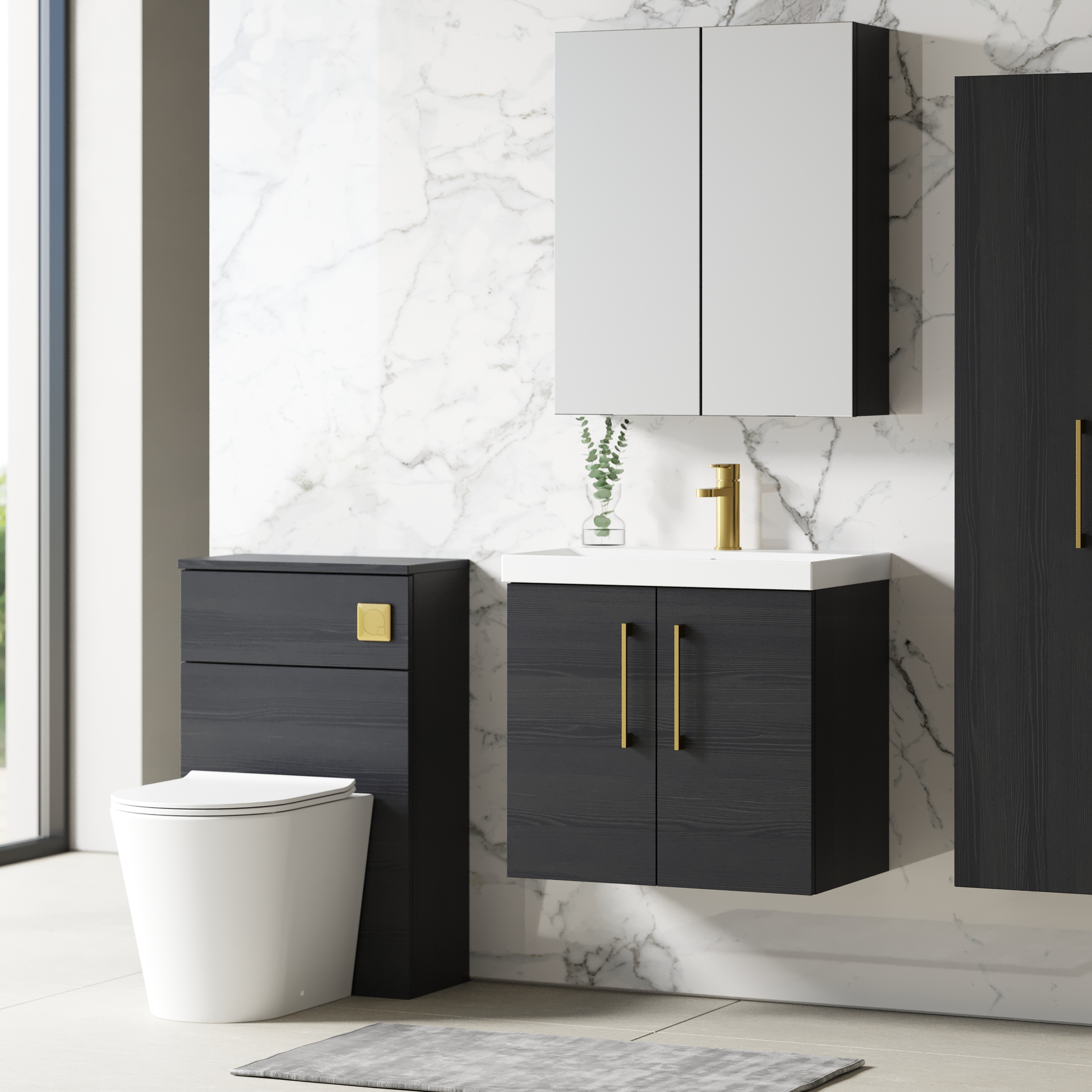 nuie Arno 600mm Wall Hung 2-Door Vanity & Thin-Edge Basin - Charcoal Black