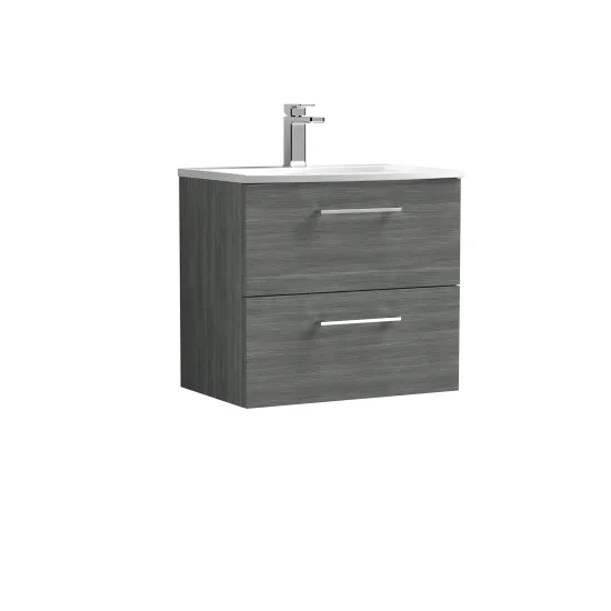 nuie Arno 600mm Wall Hung 2-Drawer Vanity & Curved Basin - Anthracite