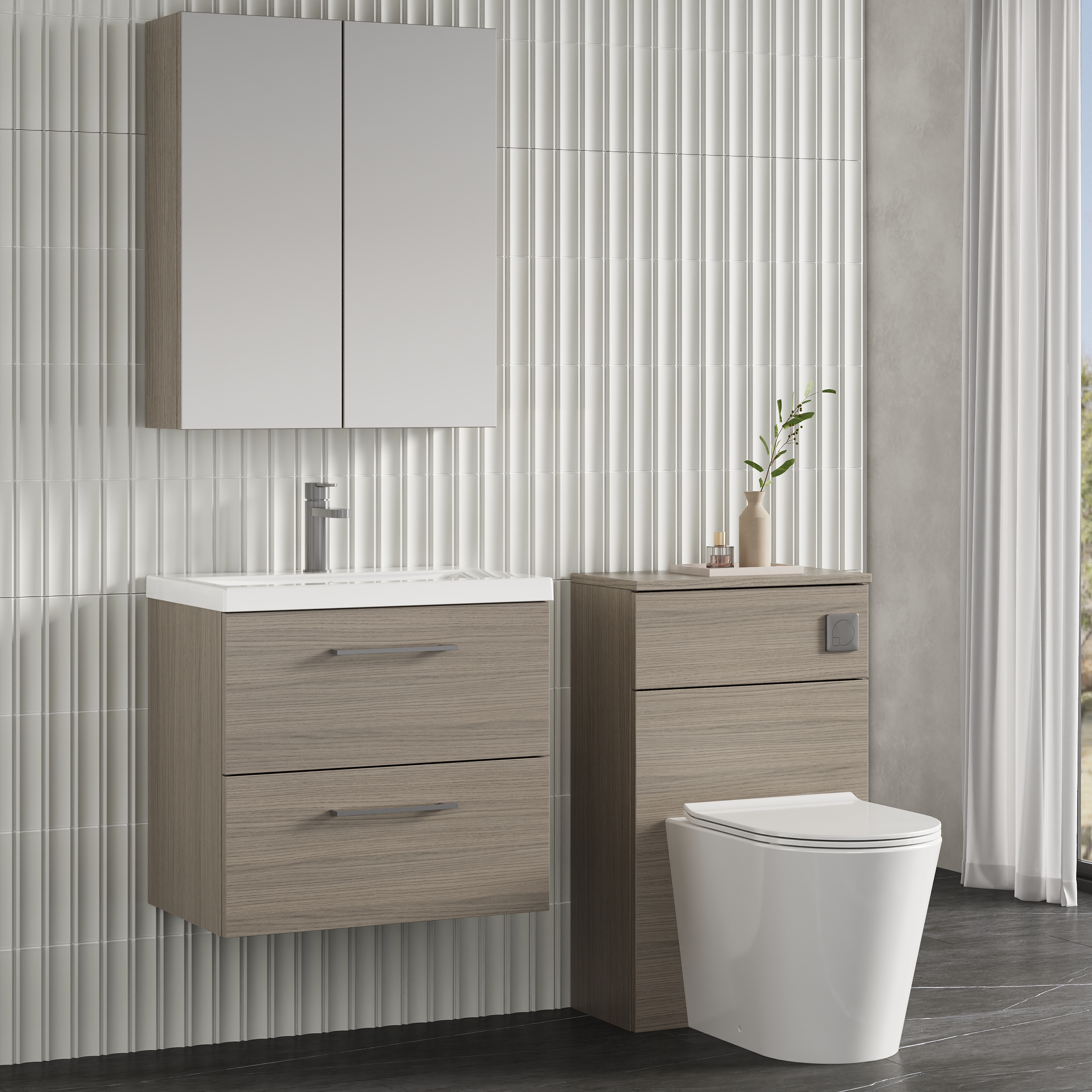 nuie Arno 600mm Wall Hung 2-Drawer Vanity & Mid-Edge Basin - Solace Oak