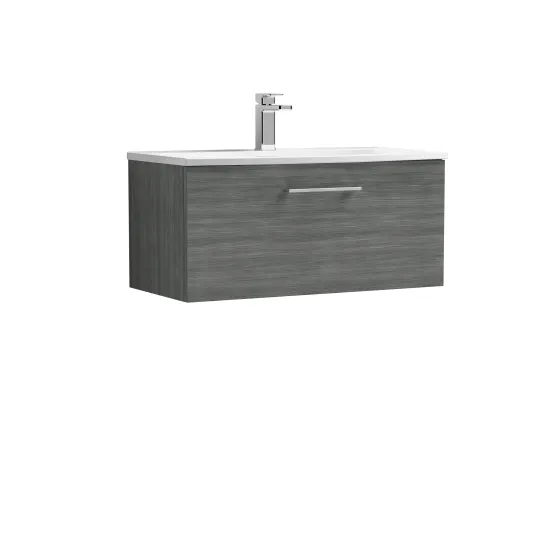 nuie Arno 800mm Wall Hung 1-Drawer Vanity & Curved Basin - Anthracite