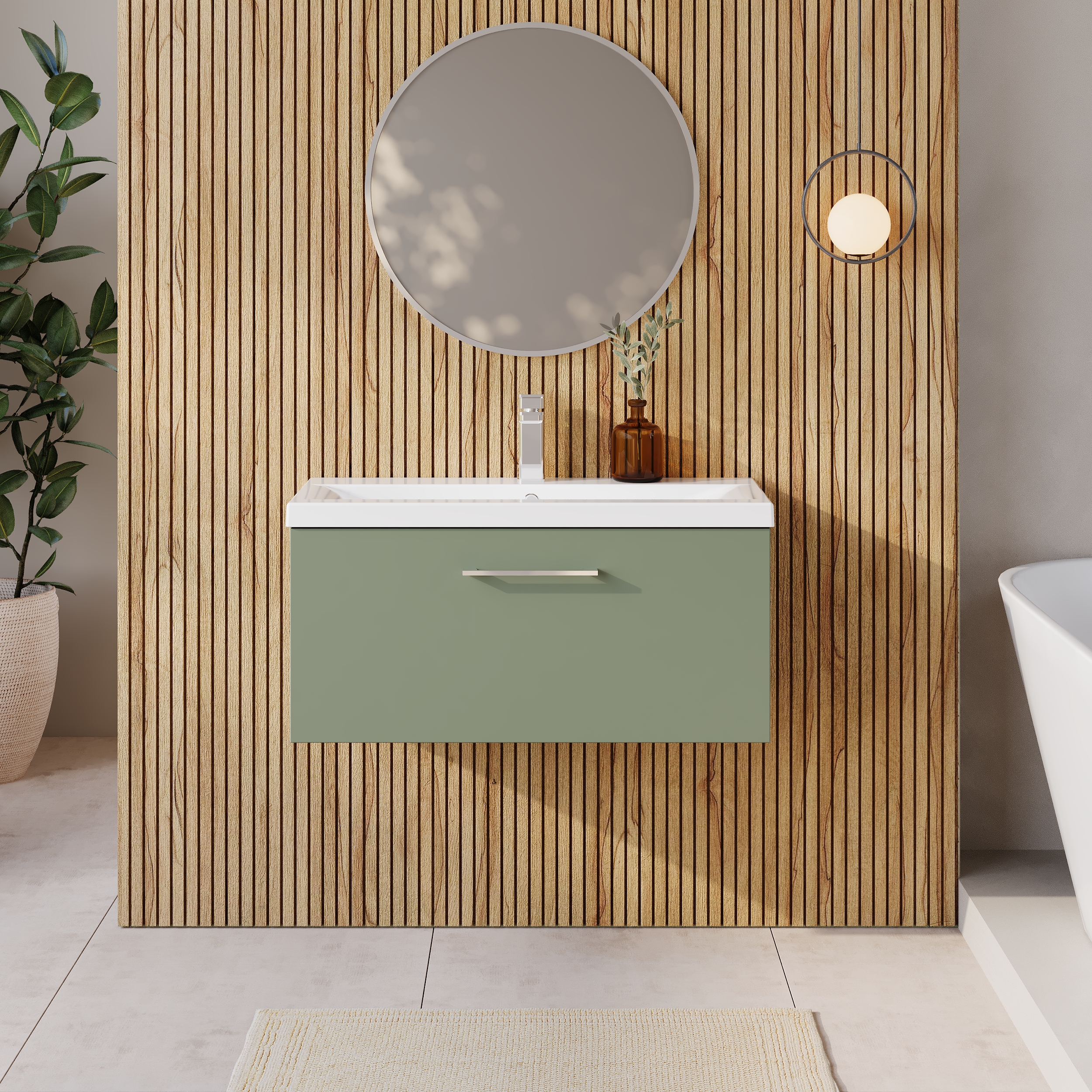 This unique green finish compliments any modern bathroom to create a designer look. This wall hung unit creates more space in your bathroom giving the illusion of a bigger bathroom. This unit has soft close drawers which limits the daily wear and tear and provides a quieter closing action. Colour co-ordinate your unit with a green WC unit. Supplied with high quality vitreous china basin.