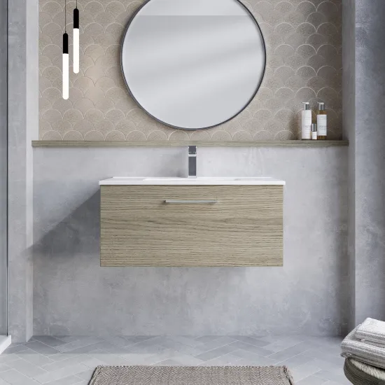 nuie Arno 800mm Wall Hung 1-Drawer Vanity & Minimalist Basin - Solace Oak