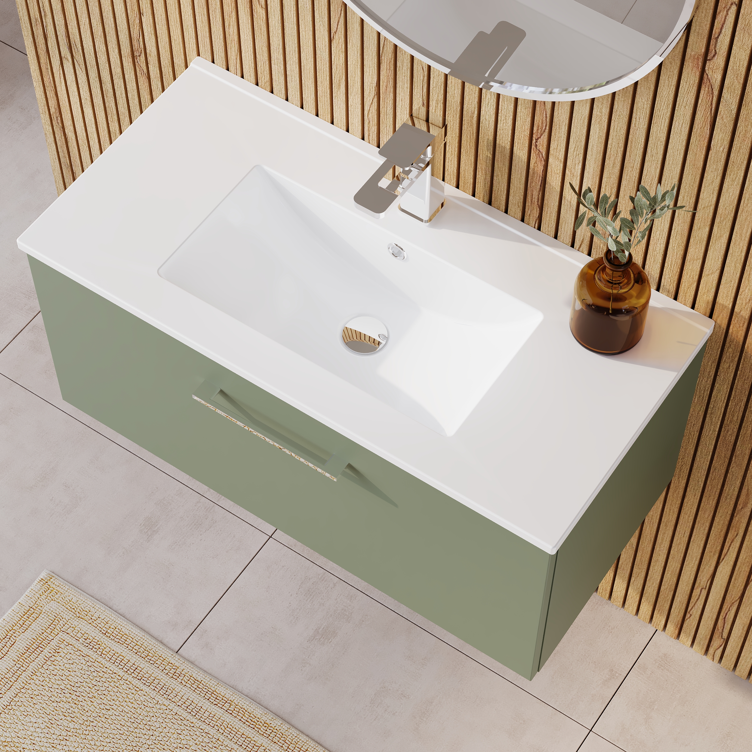 nuie Arno 800mm Wall Hung 1-Drawer Vanity & Minimalist Basin - Satin Green