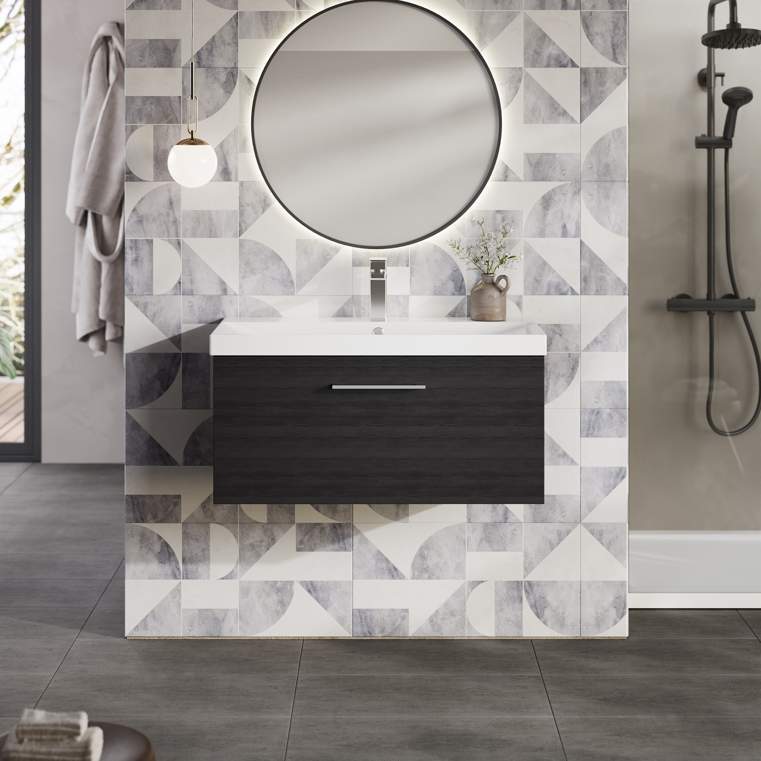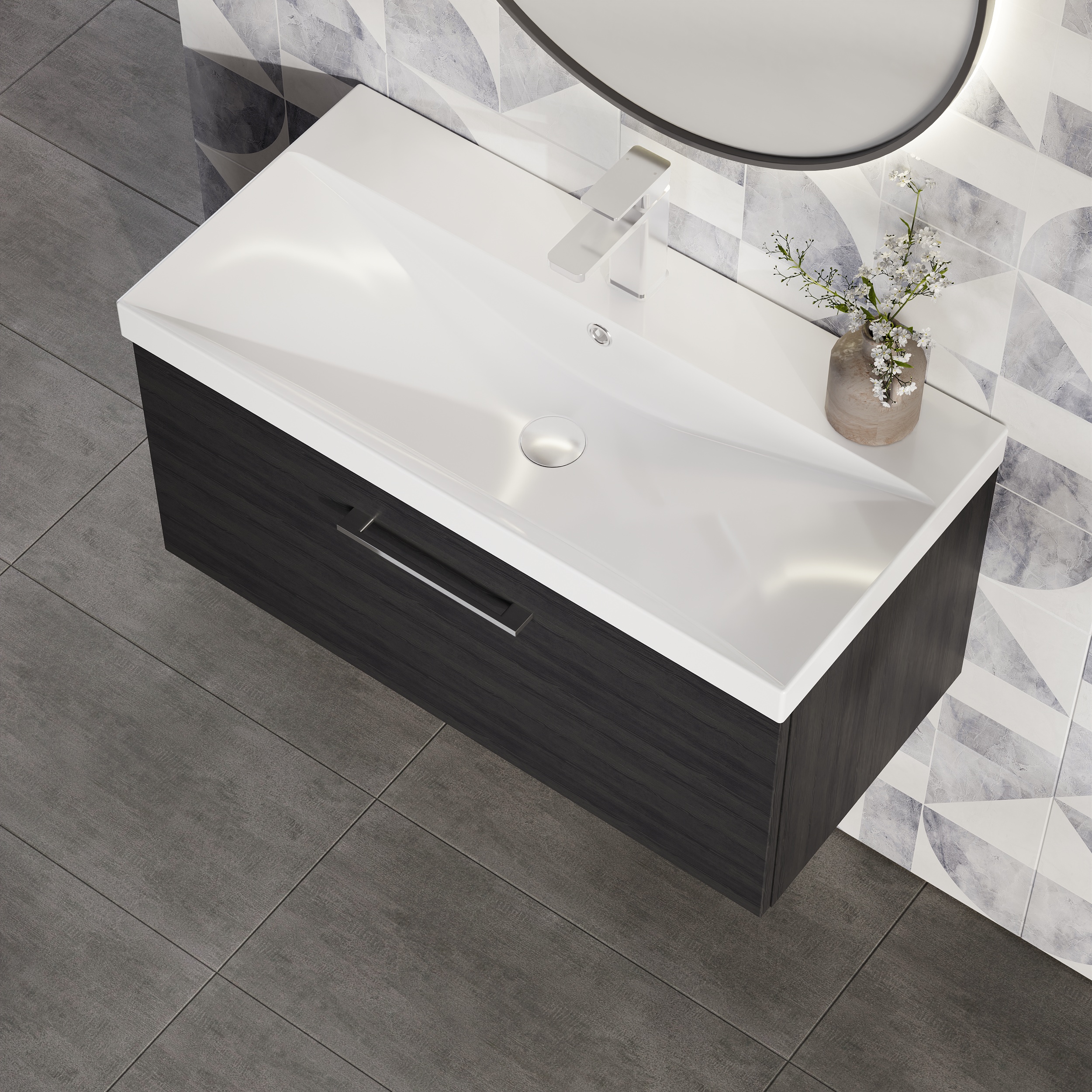 nuie Arno 800mm Wall Hung 1-Drawer Vanity & Thin-Edge Basin - Charcoal Black