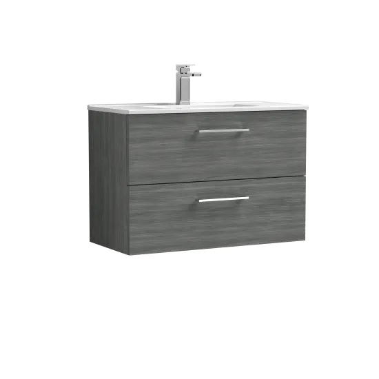 nuie Arno 800mm Wall Hung 2-Drawer Vanity & Minimalist Basin - Anthracite