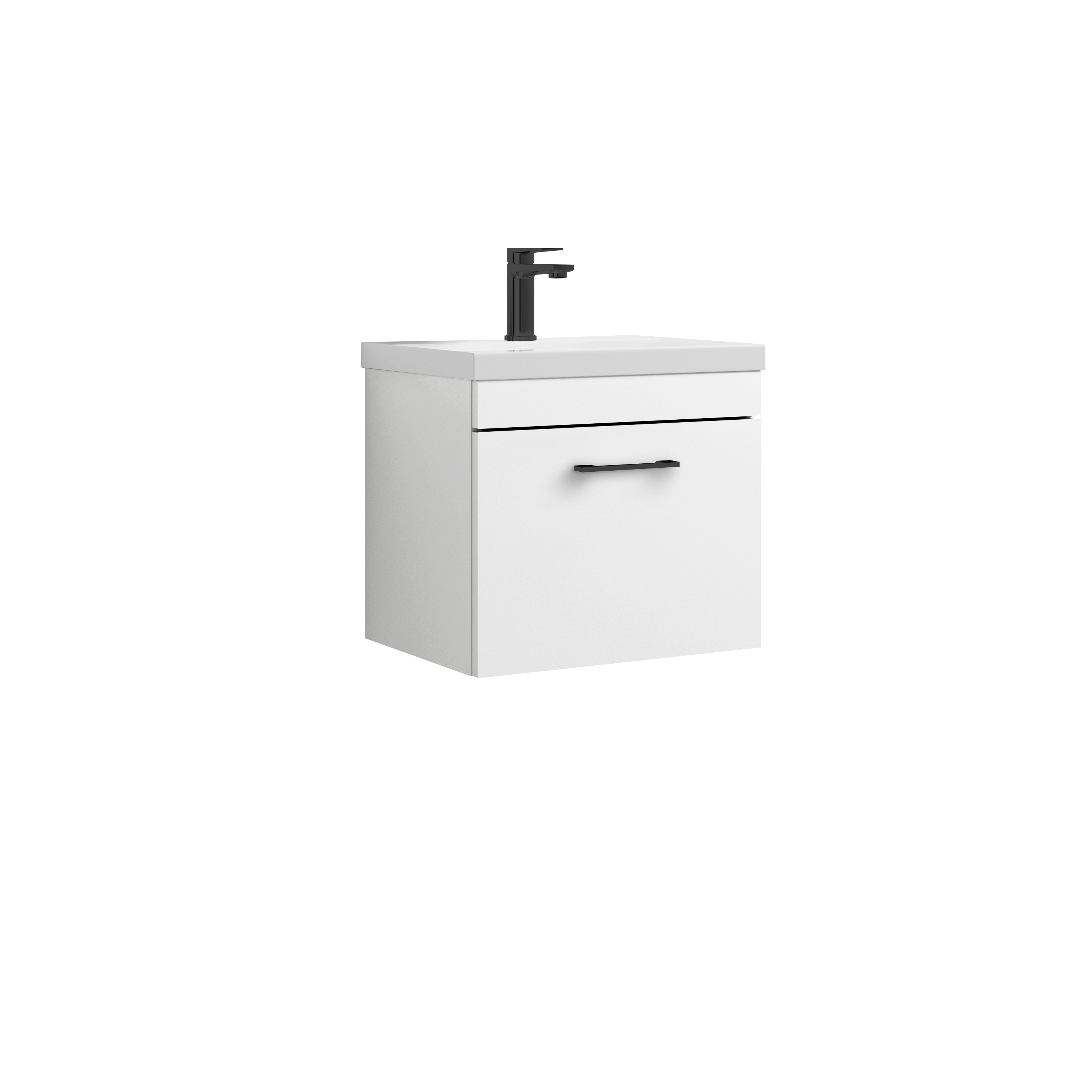 nuie Athena Wall Hung 1 Drawer Vanity with Ceramic Mid-Edge Basin and Handle 500mm - Gloss White/Matt Black