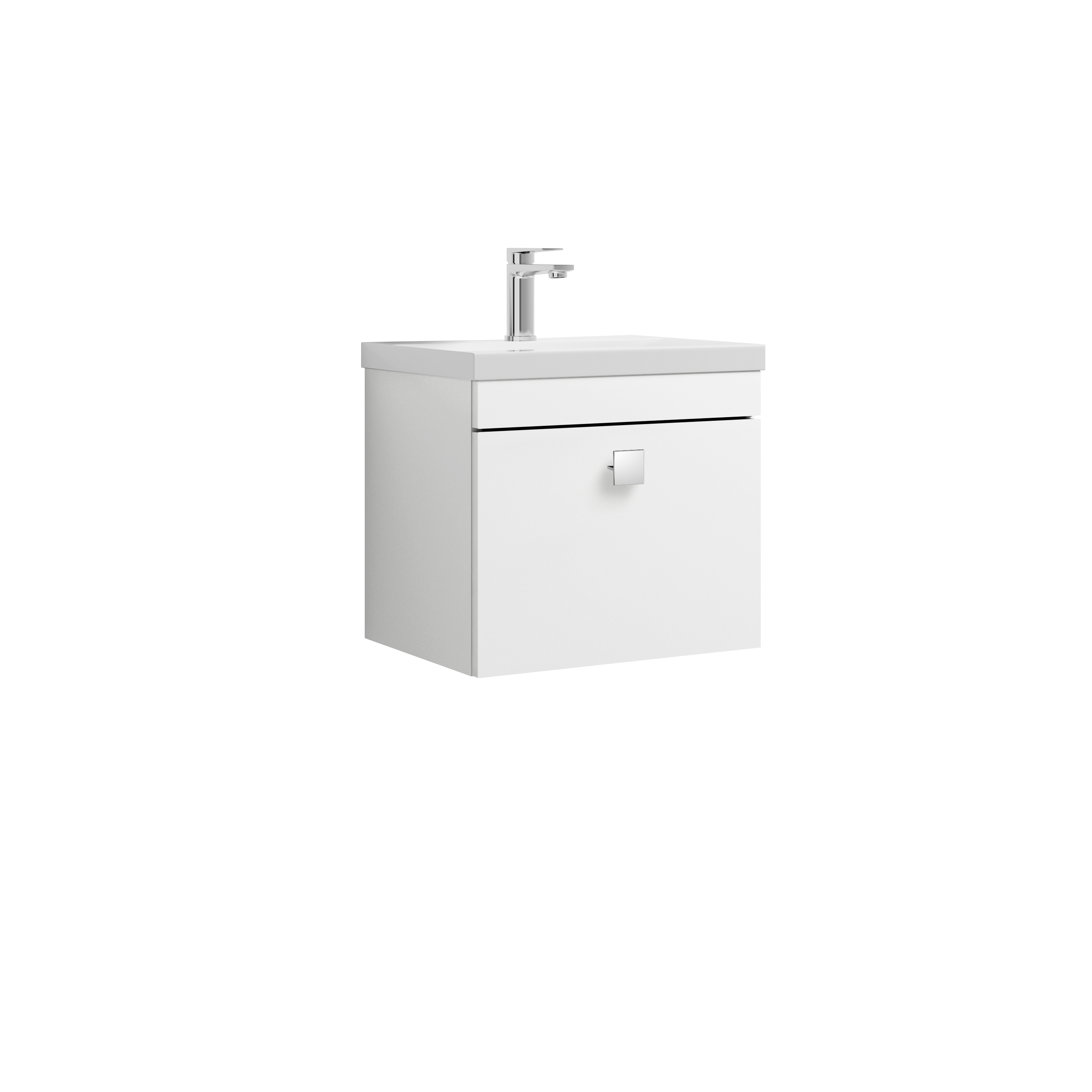 nuie Athena Wall Hung 1 Drawer Vanity with Ceramic Mid-Edge Basin and Handle 500mm - Gloss White/Chrome