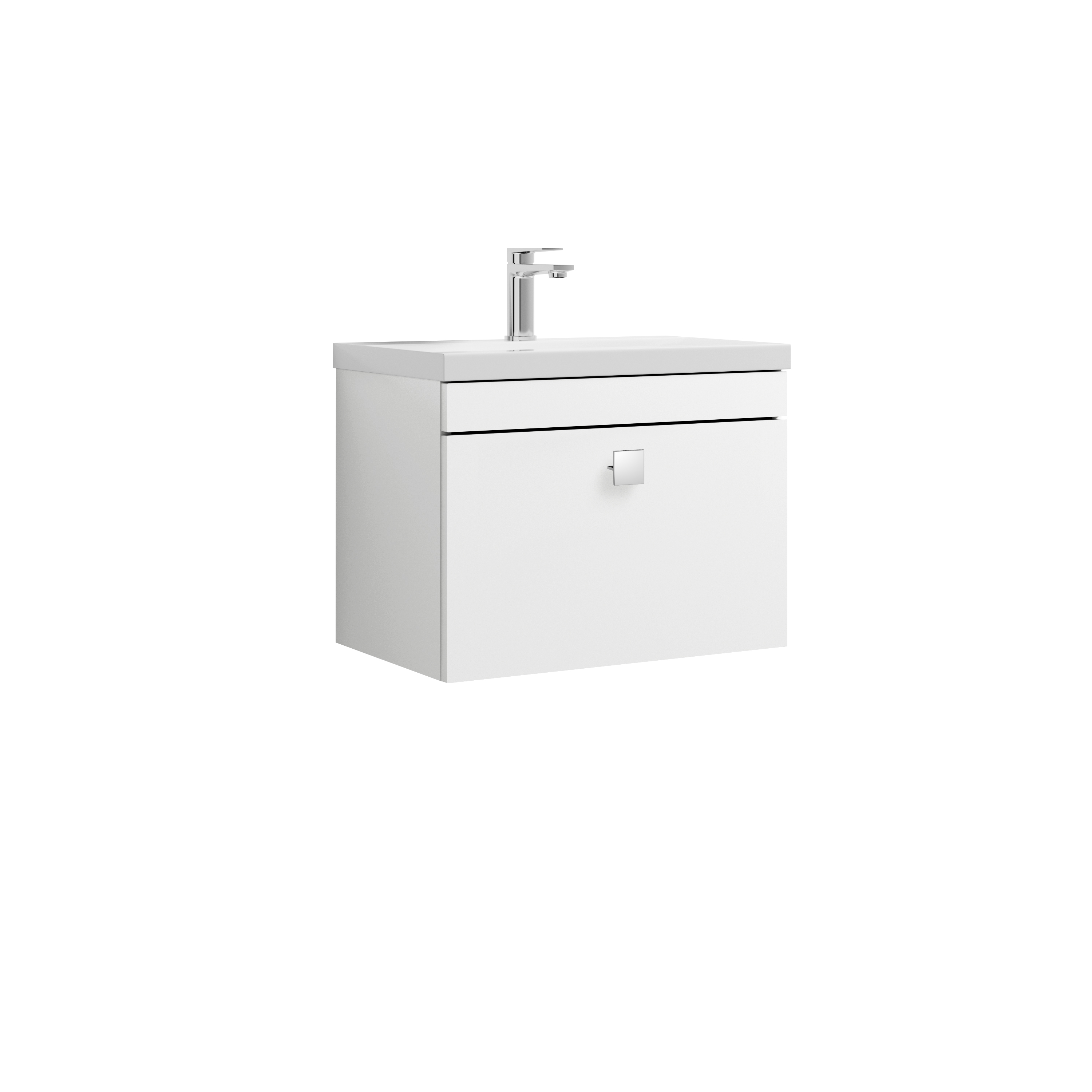 nuie Athena Wall Hung 1 Drawer Vanity with Ceramic Mid-Edge Basin and Handle 600mm - Gloss White/Chrome
