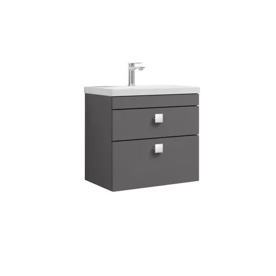 nuie Athena Wall Hung 1 Drawer Vanity with Ceramic Mid-Edge Basin and Handle 600mm - Gloss Grey/Chrome