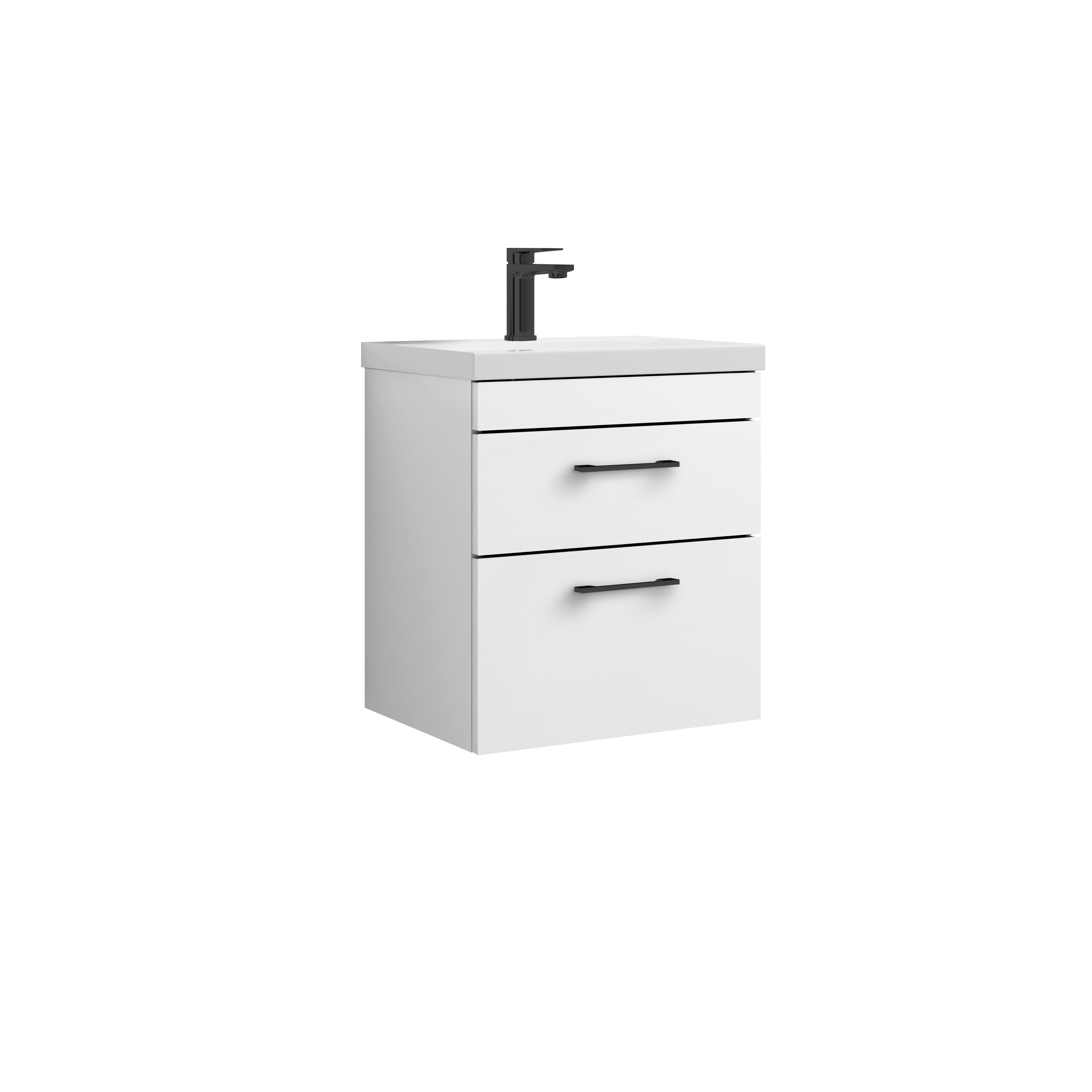 nuie Athena Wall Hung 2 Drawer Vanity with Ceramic Mid-Edge Basin and Handle 500mm - Gloss White/Matt Black